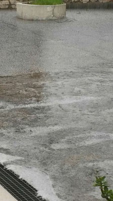 Em 2 minutos todo o chão, telhadoa, relva ficaram cobertos por alguns cms de granizo.
